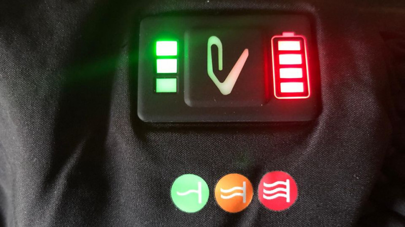 Das wichtigste Feature der beiden Testprodukte haben die Hersteller etwa mittig in der Nähe des Daumens auf dem Handschuhrücken platziert. Sealskinz' Heizbutton ist etwas dezenter designt. Ekoi punktet neben einer aufgedruckten farbigen Legende in Grün, Orange und Rot und entsprechenden LEDs auch mit einer Ladestandanzeige. Beim Mitbewerber leuchten die Lämpchen in allen Heizstufen Rot. Heißt: Die Anzahl der leuchtenden Balken lässt auf die eingestellte Heizstufe schließen.