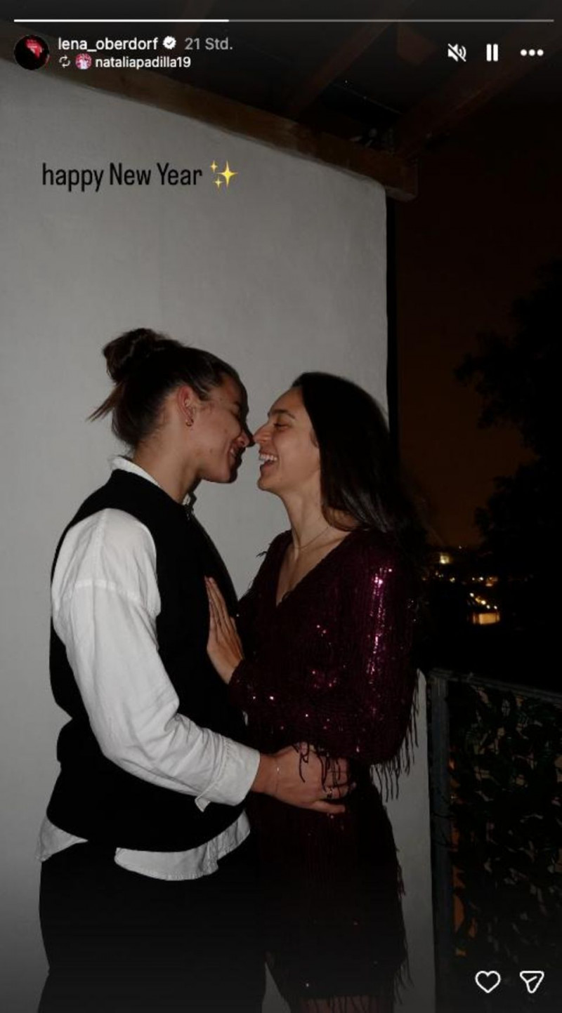 In einer gemeinsamen Instagram-Story wünschten die Fußballerinnen ihren Followern ein frohes neues Jahr. Auf dem Bild kommen sie sich nah, offenbar kurz vor oder kurz nach einem Kuss.