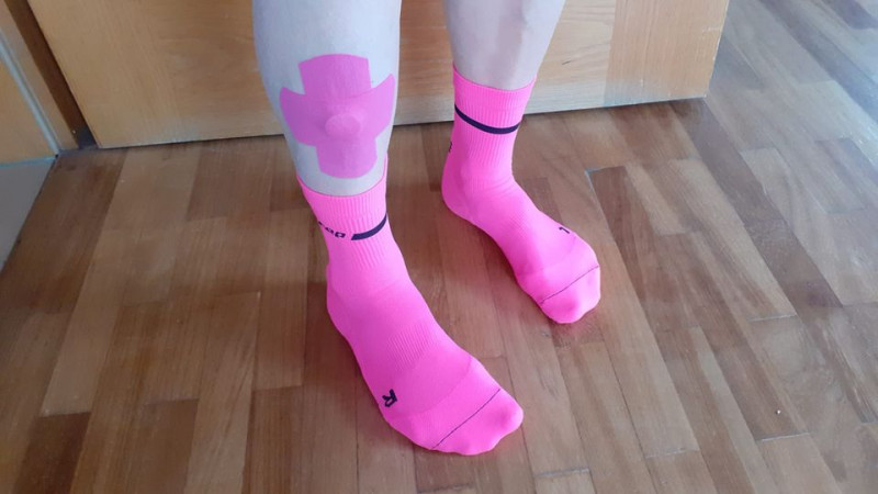 Die erfahrene Physiotherapeutin und Ausdauersportlerin Kristina Jago hat sich Triggid genau angeschaut und gewissenhaft geklebt. Lobenswert fand auch sie die Anleitung. Von einem Punkt abgesehen, wird man hier auch als Laie auf diesem Gebiet sicher durch die richtige Anwendung geführt. Das Tape lässt sich problemlos auf die entsprechende Länge zu- und anschneiden. Um den Triggerknopf ins Kinesiotape zu integrieren, soll es in der Mitte gefaltet und am Falz leicht eingeschnitten werden. In dieses Loch wird später der Triggerknopf eingesetzt. Auch das funktionierte bei unserem Test wie beschrieben. Mit dem Lokalisieren der ominösen Triggerpunkte hatte unsere Expertin wenig überraschend keine Probleme. So wurde die Knopf-Tape-Kombi sowohl an der Halswirbelsäule als auch am Ellenbogen, der Schulter und dem Schienbein fachgerecht platziert und über längere Zeit getragen.